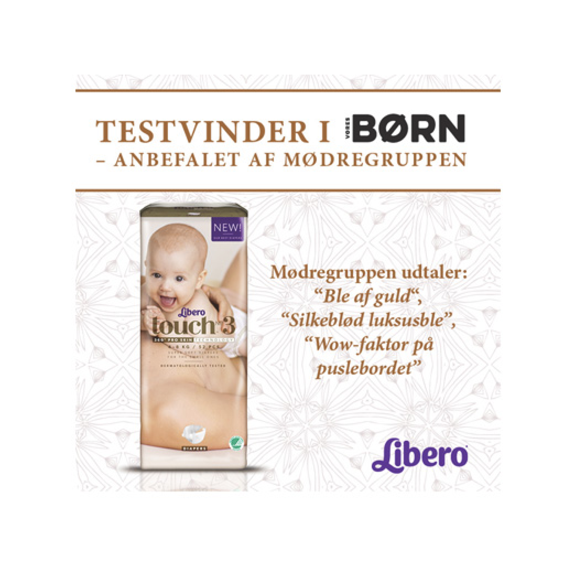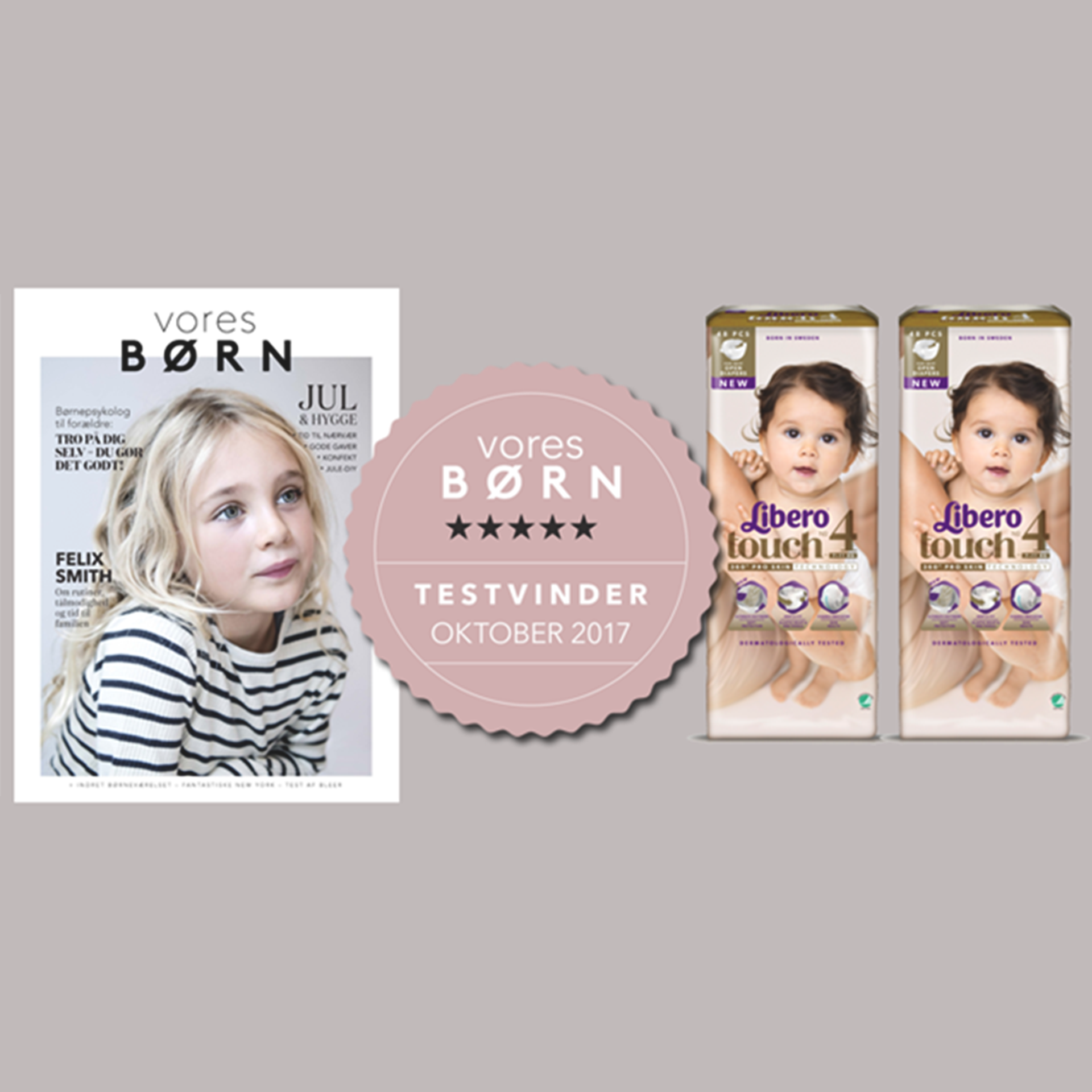 Vi er igen utroligt stolte over, at have vundet magasinet Vores Børn’s bletest, hvor Libero Touch åbne bleer str. 4 vandt som bedste ble i testen.