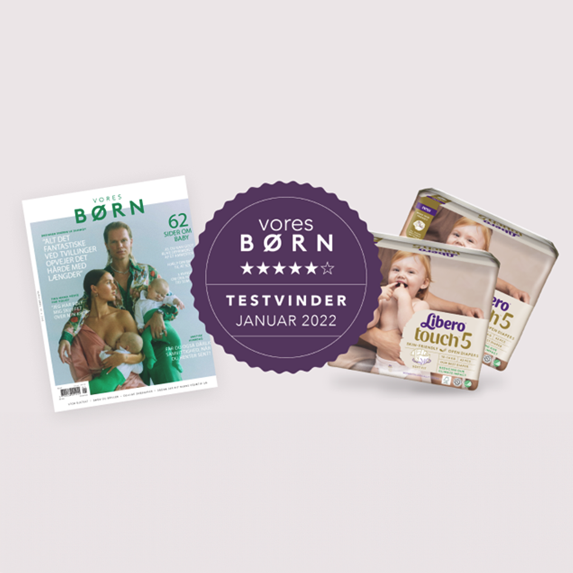 Tiende gang på toppen! Vi er så glade for, at vi for 10. gang er blevet kåret som Bedst i test af Forældregruppen i magasinet Vores Børn. De siger om Libero Touch str. 5: "De er også så fine og tynde, men bløde, og den brede elastik virker virkelig behagelig for de små" "Bonus for fokus på klimaet på emballagen"