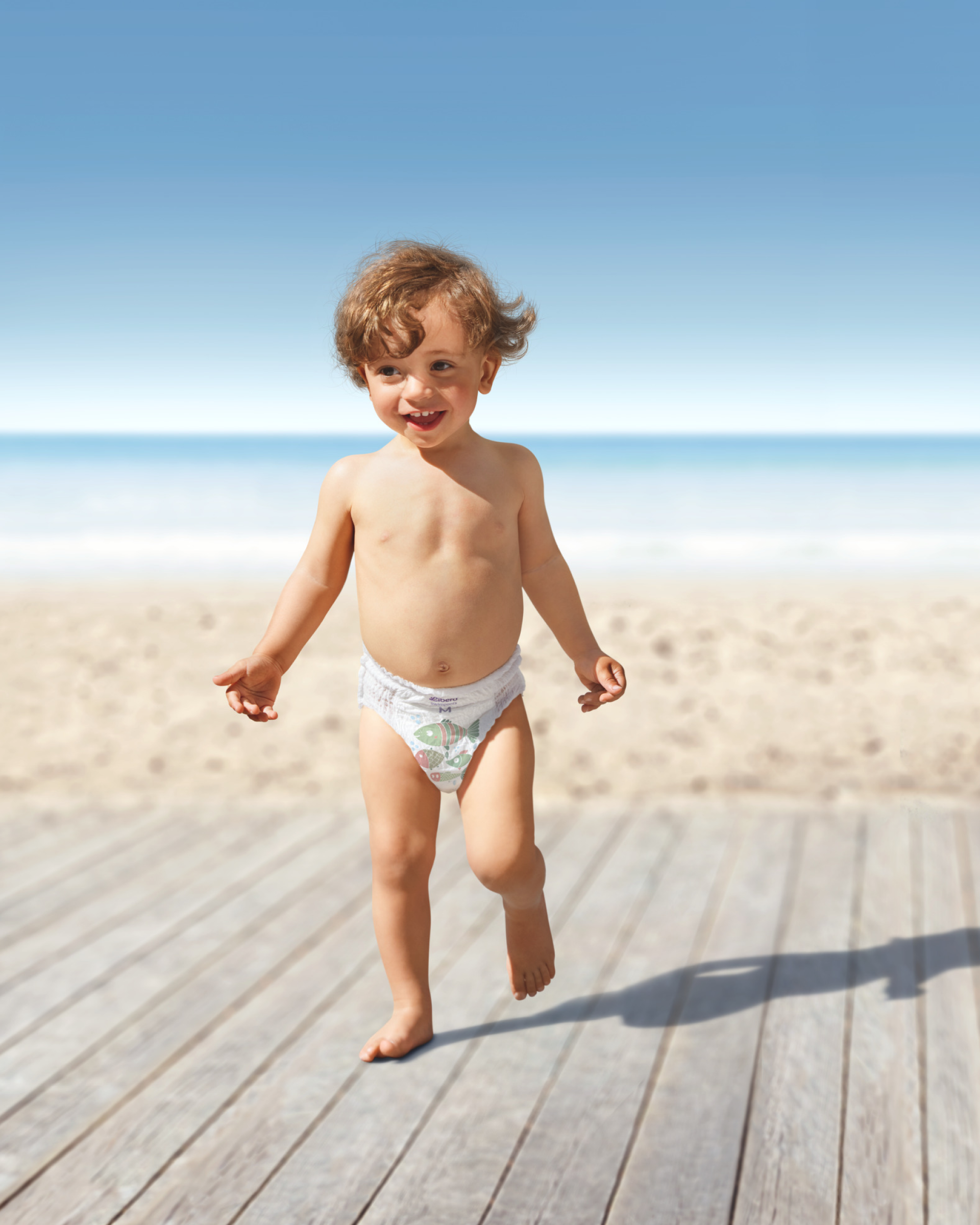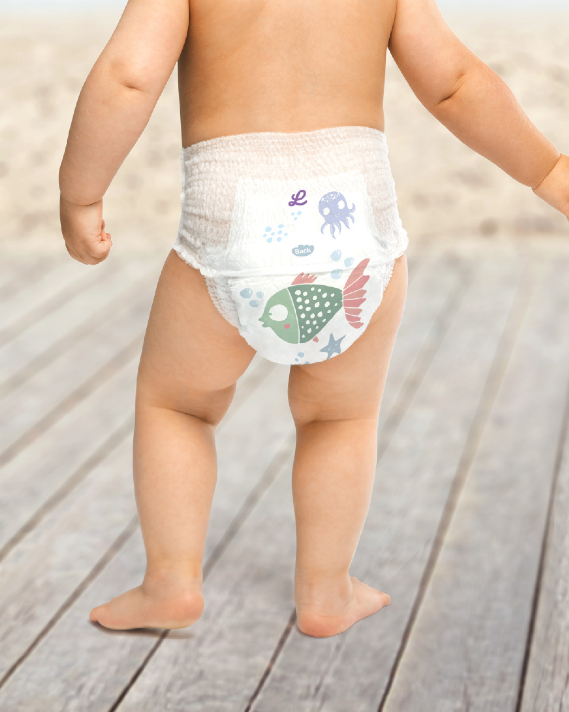 En absorberende kerne med dobbelte lækagebarrierer omkring benene holder urin og afføring på plads ved alle vandaktiviteter
