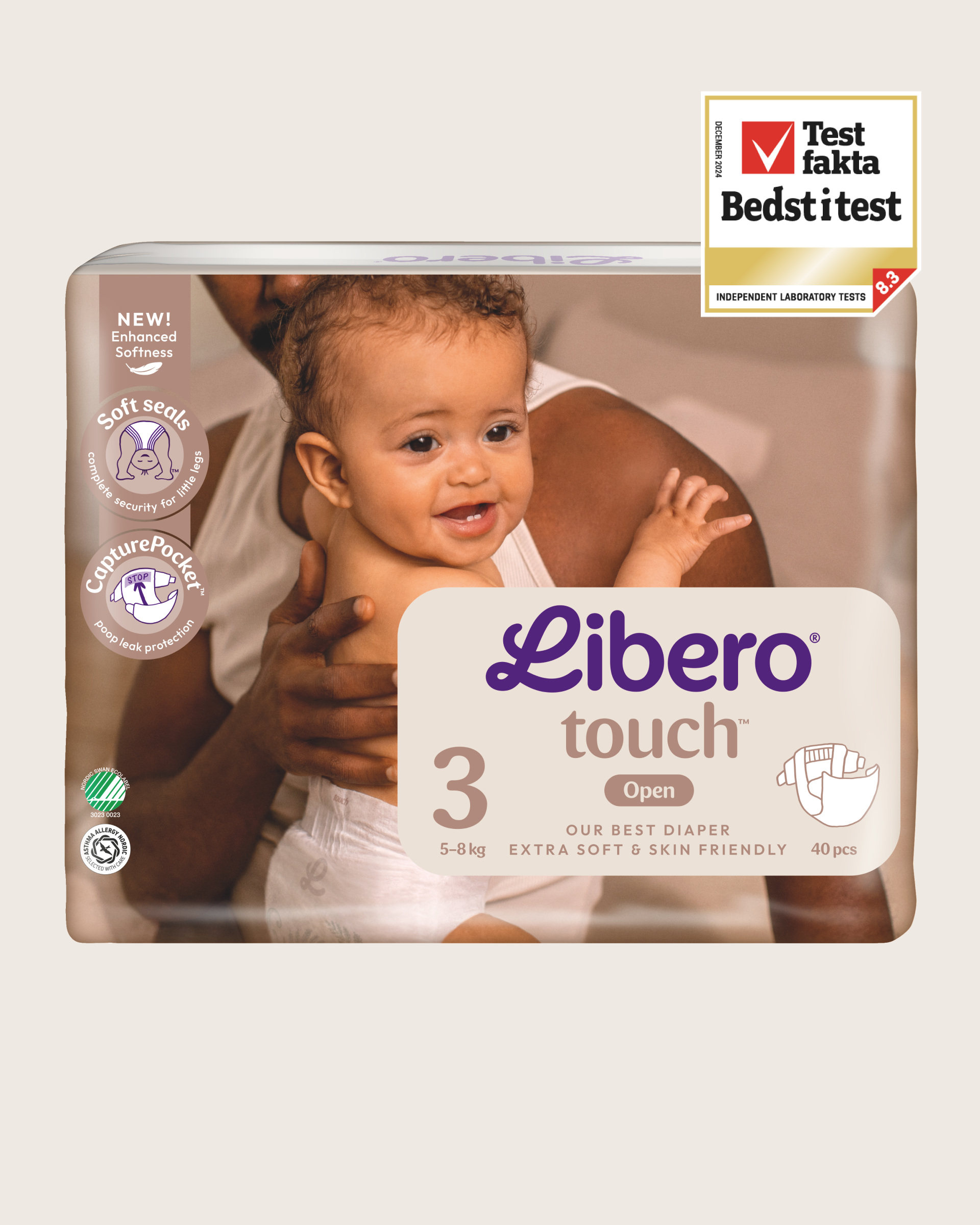 Hudvenlig, åndbar og dermatologisk testet. Med CapturePocket™ i ryggen og vådindikator kan du forhindre griseri og ubehagelige lækager. Soft seals – superblød, elastisk pasform og komplet sikkerhed for små ben. Enestående lækagesikkerhed i op til 12 timer med superabsorberende kerne med kanaler. Anbefales af Asthma Allergy Nordic og er certificeret af Svanen.